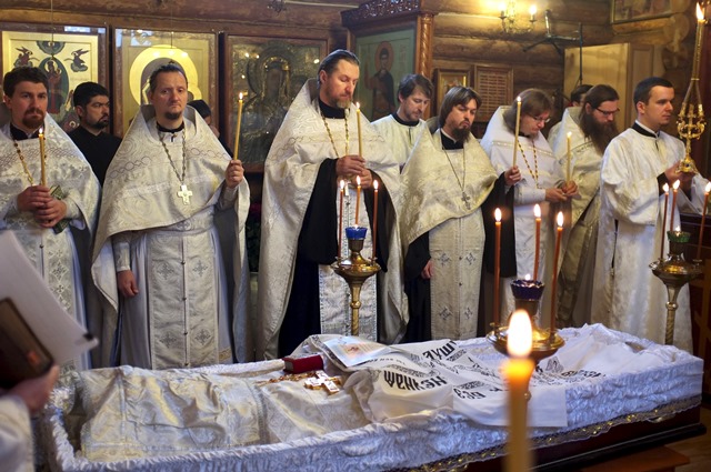 Божественную литургию и чин отпевания возглавил епископ Видновский Тихон, ему сослужили секретарь Московского епархиального управления протоиерей Михаил Егоров, благочинный Видновского округа священник Дмитрий Березин, духовенство благочиния.