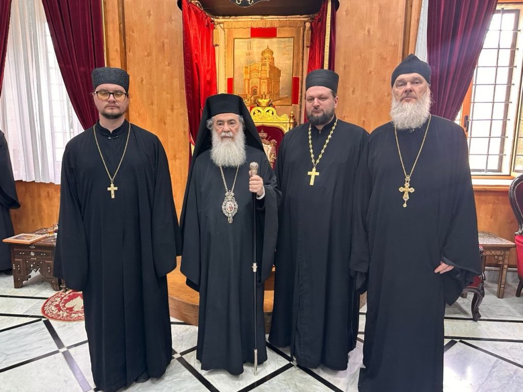 Также паломники встретились с Блаженнейшим Феофилом III, Патриархом Святого Града Иерусалима и всея Палестины, Сирии, Аравии, всего Заиорданья, Каны Галилейской и святого Сиона. Его Блаженство преподал гостям благословение и вручил памятные подарки: иконы Пресвятой Богородицы «Иерусалимская» и фотографии Гроба Господня.