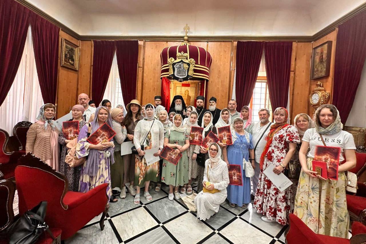 Также паломники встретились с Блаженнейшим Феофилом III, Патриархом Святого Града Иерусалима и всея Палестины, Сирии, Аравии, всего Заиорданья, Каны Галилейской и святого Сиона. Его Блаженство преподал гостям благословение и вручил памятные подарки: иконы Пресвятой Богородицы «Иерусалимская» и фотографии Гроба Господня.