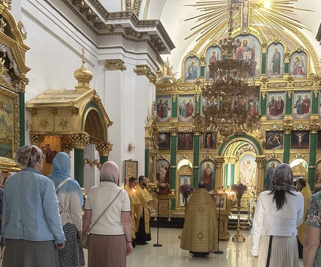 Паломники с экскурсоводом посмотрели Тверь, побывали во многих храмах города и приложились к святыням. Следующей остановкой был город Торжок, экскурсия по городу с множеством храмов в небольшом городе закончилась в Борисо-Глебском монастыре, где помолились за всенощным бдением.