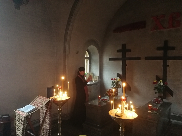 Отец Сергий служил панихиду в часовне, где захоронены убиенные оптинские монахи иеромонах Василий, иноки Трофим и Ферапонт. После помазания святым елеем и чаепития в монастырской трапезной, паломники направились домой воодушевленные духовной радостью от посещения святого места.
