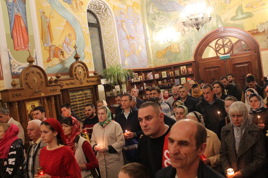 В Пасхальную ночь 28 апреля 2019 г. после совершения крестного хода, большинство прихожан осталось до окончания богослужения и участвовало в Таинстве Евхаристии.