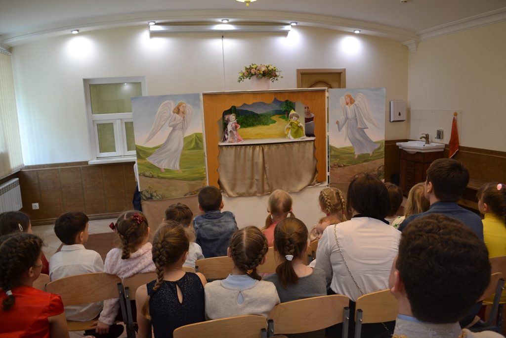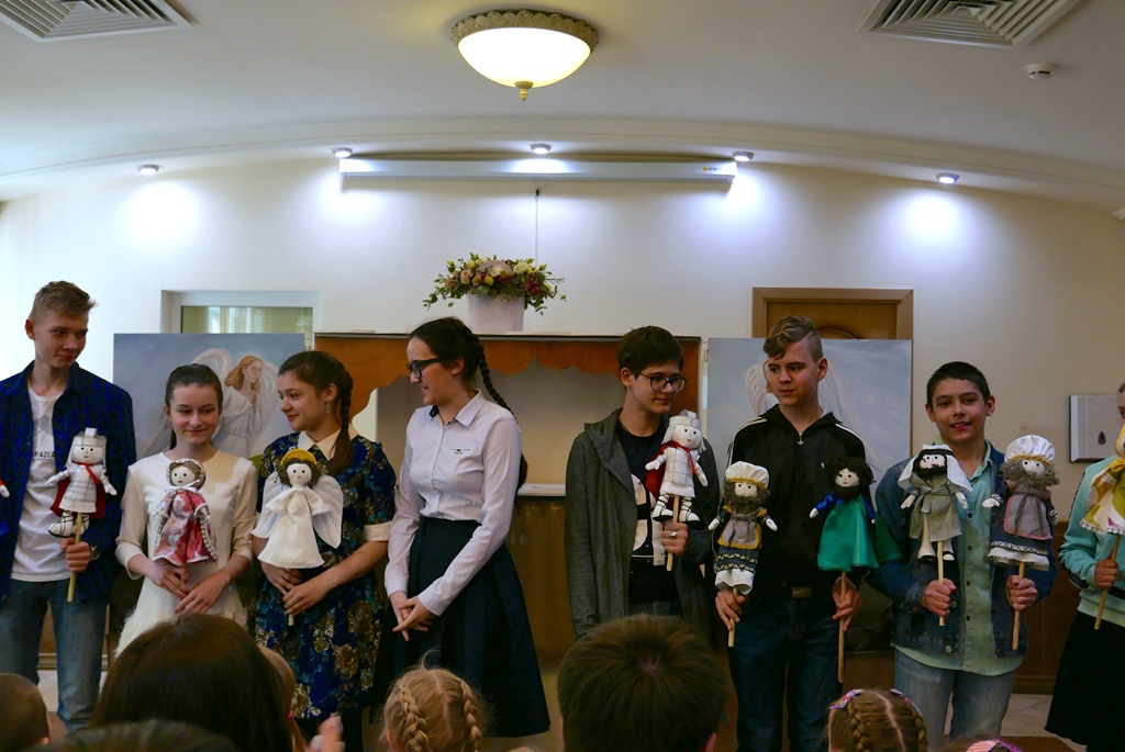 К этому празднику учащиеся подросткового клуба готовились целый учебный год. Мальчики с преподавателем ДПИ Андреем Игоревичем Белицким каждое воскресенье на уроках Творчества мастерили кукольный театр, а девочки с Галиной Константиновной Тоневой шили кукол. Итогом кропотливого труда стал Пасхальный кукольный спектакль, который дети усердно репетировали и показали на празднике.