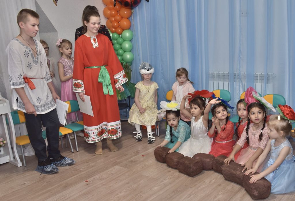 Воспитанники в качестве юных актёров впервые приняли участие в театральной постановке и показали присутствующим сказку о поиске весны, в которой прозвучали песни о Пасхе, солнышке и добре. Дети старательно читали стихи и на радость зрителям исполнили «Танец цветов».