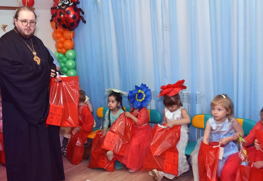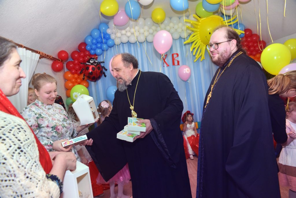 Духовник центра и настоятель Христорождественского храма с. Беседы протоиерей Сергий Ефимов помог раздать всем подопечным праздничные подарки.