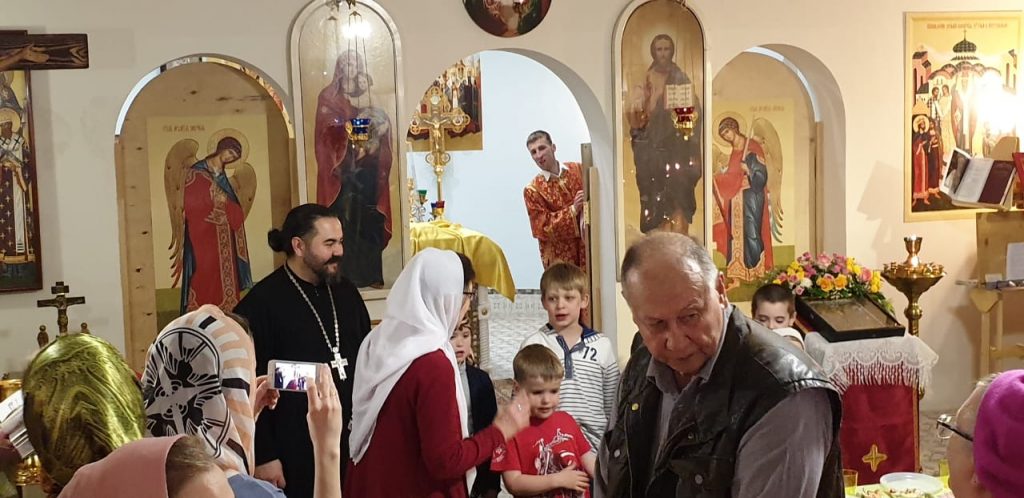 В Великую Субботу, 27 апреля, во время освящения куличей на приходе прошла благотворительная просветительская акции «Пасхальная весть». В рамках акции настоятель храма священник Александр Стуруа раздал пришедшим в этот день верующим православные книги и листовки. Также батюшка рассказал о смысле праздника Воскресения Христова.