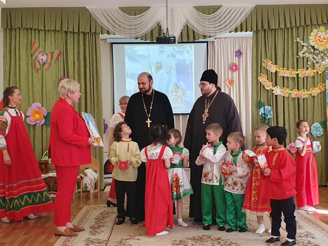 19 апреля в дошкольном отделении МБОУ Лопатинсккой среднеобразовательной школы состоялся пасхальный праздник, подготовленный детской группой, изучающей основы Православной веры. К этому дню была оформлена выставка пасхальных яиц, сделанных детьми из различных материалов, а веселую атмосферу создавали веселые игры, пестни, народные танцы, исполненные детьми. Посмотрев спектакль «Пасхальный колобок», малыши смогли поразмышлять о настоящей дружбе. Затем родителей с чадами добрыми словами поздравили настоятель прихода Успенского храма г. Видное иеромонах Софроний (Горохольский), клирик иерей Михаил Попов и подарили всем шоколадные яйца.