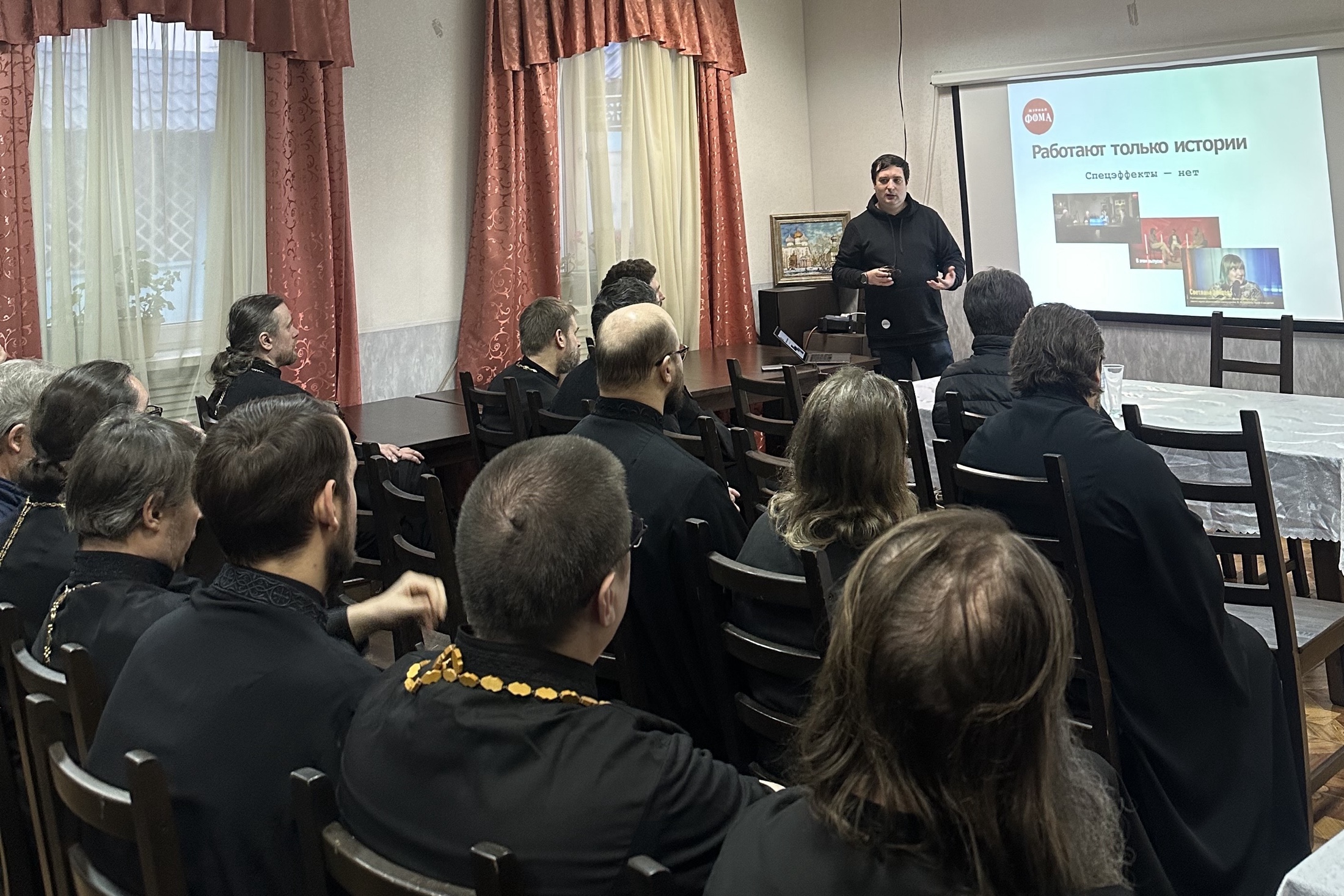 Алексей Сергеевич рассказал о современных форматах православных медиа, о вариантах проповеди в современном информационном пространстве. В конце встречи спикер ответил на вопросы духовенства.