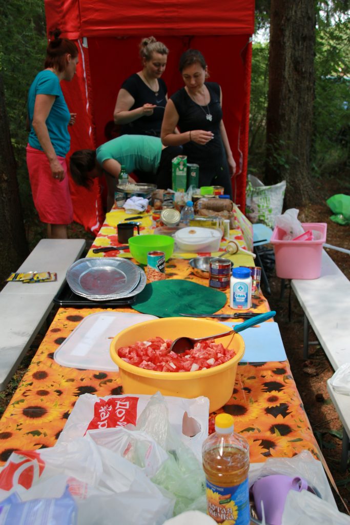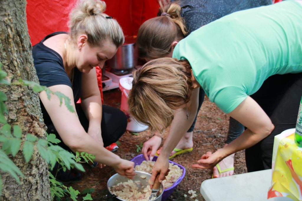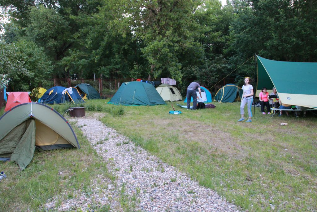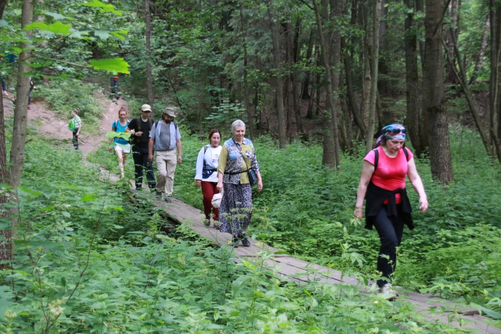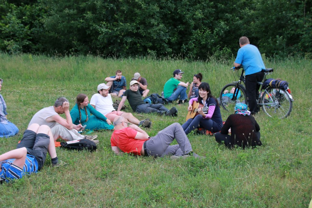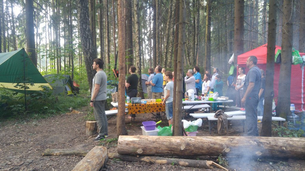 На второй, субботний день паломничества пришлось дежурство прихожан из Развилки. Днем они приготовили для всех обед на берегу небольшого пруда, где многие с удовольствием искупались. Вечером мы поставили палатки на территории Троицкого храма в Ельдигино. Настоятель, протоиерей Александр Грузинов, уже много лет гостеприимно встречает паломников. Утром в воскресенье после литургии опять взяли рюкзаки и отправились в путь.