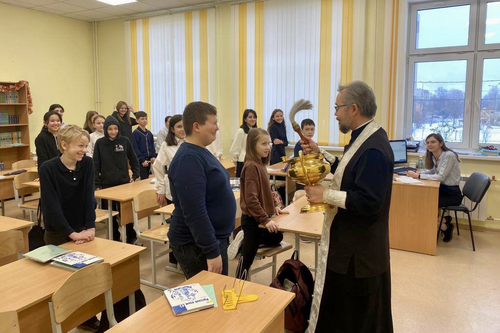 19 января, в праздник Святого Богоявления, настоятель Никольского храма пос. Володарского протоиерей Сергий Свалов и клирик храма иерей Максим Гортинский по традиции посетили МБОУ Володарская СОШ. Поздравили педагогов и учащихся с двунадесятым праздником.