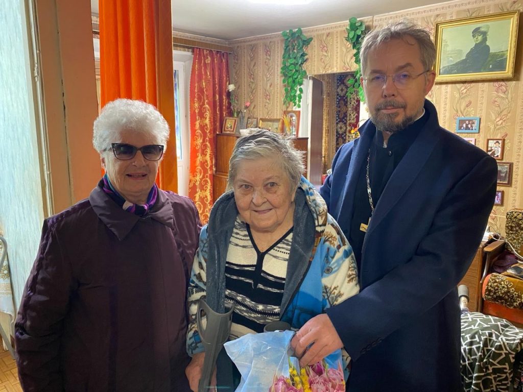 Всю Светлую седмицу настоятель Никольского храма поселка Володарского Ленинского г.о. протоиерей Сергий Свалов совместно с председателем местного совета ветеранов А.М. Сухаревой и прихожанами храма посещали прихожан храма и жителей поселения, которые по состоянию здоровья не могли участвовать в Пасхальном богослужении. После праздничных песнопений и поздравлений пожилым людям вручили пасхальные продуктовые наборы, куличи и яйца.