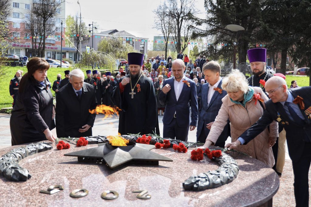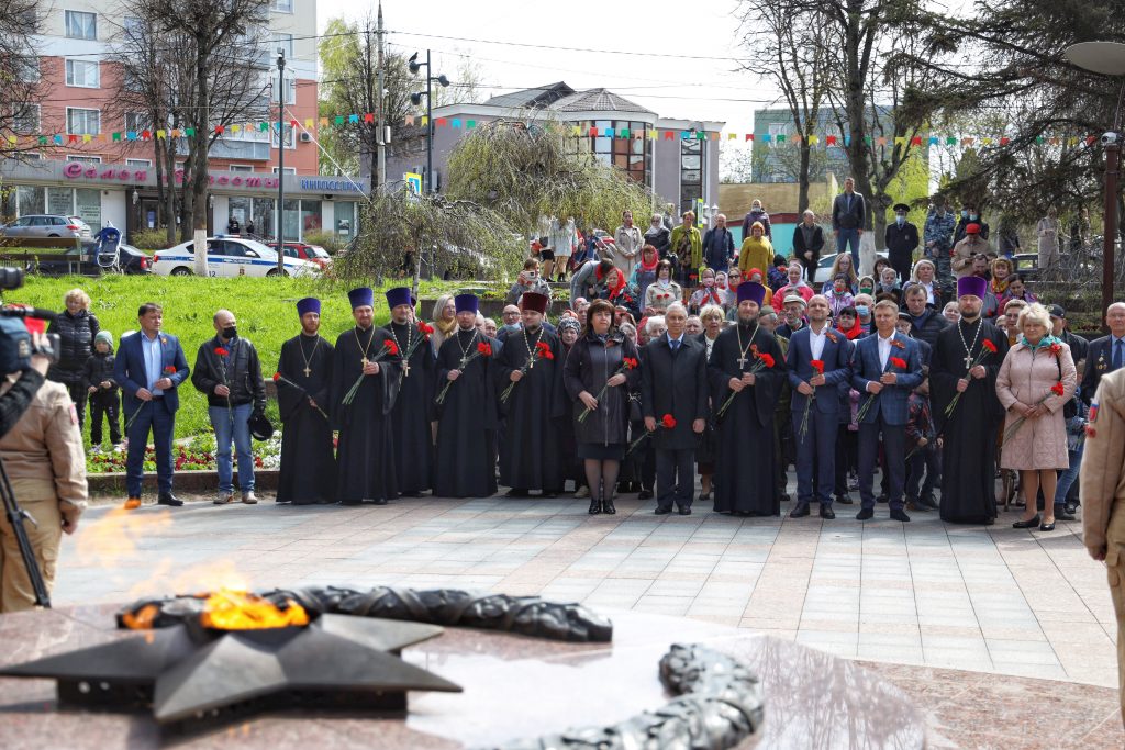 После Крестного хода и поздравлений настоятеля и главы, на Аллее Славы участники почтили память «вождей и воинов, жизнь свою за веру и Отечество положивших». В памятном мероприятии приняли участие ветераны Великой Отечественной Войны, представители общественных организаций района, учащиеся воскресной школы Георгиевского храма, воспитанники военно-патриотического движения Ленинского района «Юнармия». По традиции «минуту молчания» 12-ти кратными ударами возвестил главный колокол Георгиевского храма. После церемонии возложения цветов прошёл праздничный обед и концерт для ветеранов Ленинского округа в трапезной Георгиевского храма.