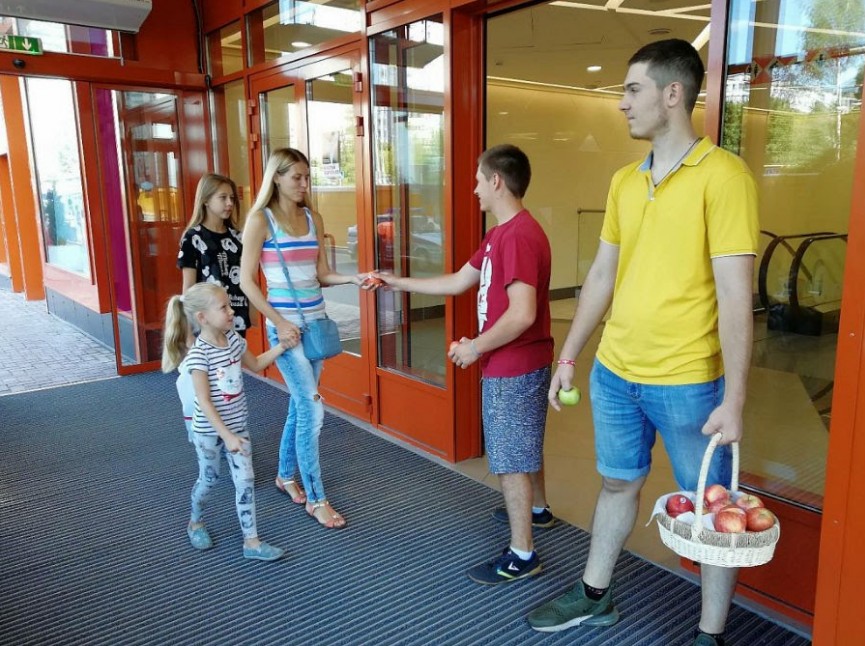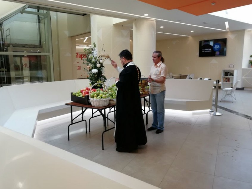 19 августа, в день праздника Преображения Господня, в миниполисе «Краски жизни» города Видное в ТЦ «Ларец» настоятель Никольского храма села Ермолино протоиерей Виктор Ястремский совершил праздничный молебен, освятил яблоки и поздравил жителей микрорайона с Преображением Господним. В этот день волонтеры торгового центра раздавали всем посетителям освященные яблоки.