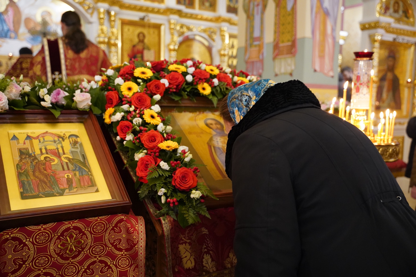По окончании литургии был совершен праздничный крестный ход и прочитана молитва у иконы святого.
