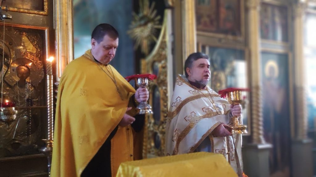 В этот день были совершены две Божественные Литургии. После ранней совершен молебен с водосвятием. Позднюю Литургию возглавил настоятель Никольского храма с. Ермолино протоиерей Виктор Ястремский. После богослужения все желающие могли подкрепиться чаем со сладким угощением во дворе храма.
