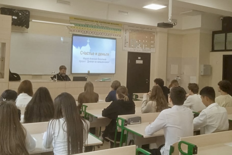 18 сентября в рамках проекта «Диалог со священником» состоялась первая в новом учебном году встреча учащихся Мисайловской средней школы № 1 со священником. Настоятель храма Димитрия Солунского деревни Мисайлово Ленинского г.о. иерей Алексей Васильев провёл беседу со старшеклассниками на тему «Счастье и деньги».