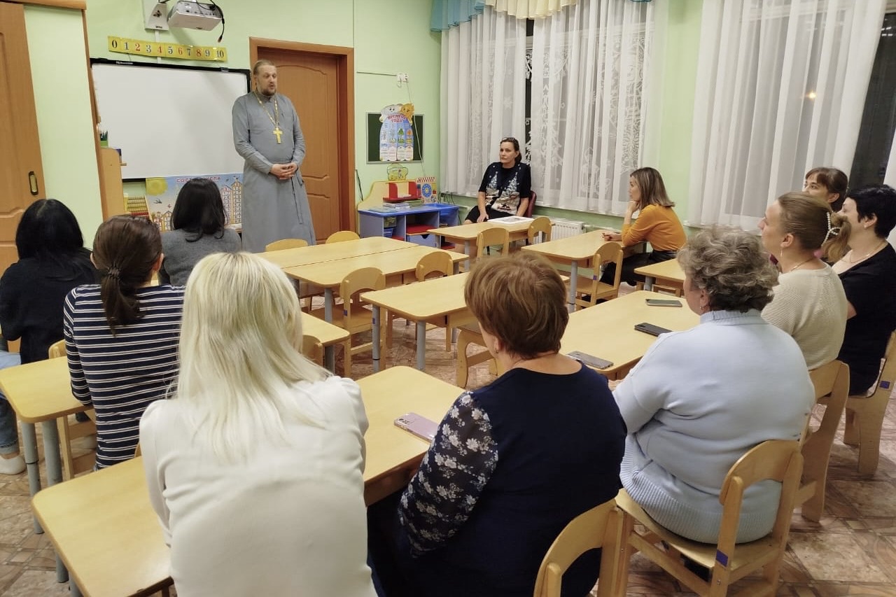 3 декабря 2024 года в рамках проекта «Добрый сад» клирик Казанского храма с. Молоково иерей Илия Панкратов принял участие в родительском собрании в ДОУ «Василёк» с. Молоково Ленинского г.о. Отец Илия рассказал родителям о проекте «Добрый сад», который разработан Подольской епархией совместно с Зональным объединением муниципальных органов управления образования. В рамках проекта в ДОУ «Василёк» запланировано создание семейного клуба, проведение цикла тематических бесед и участие в церковных праздниках.