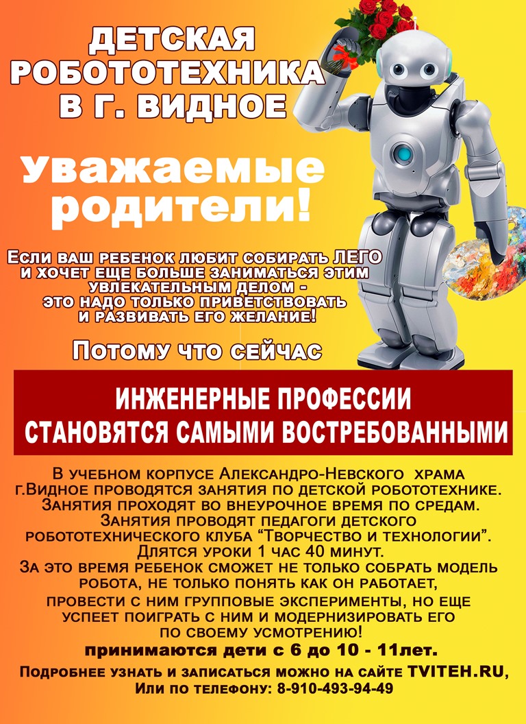 С января 2019 года открывается кружок робототехники для детей в Видном.