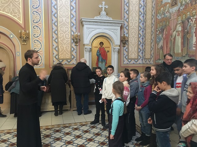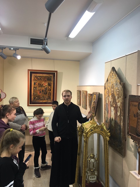 По окончании посещения Духовной семинарии экскурсия продолжилась на территории Старо-Голутвина мужского монастыря, где детям рассказали об основании обители преподобным Сергием Радонежским. Все собравшиеся в величественном Богоявленском соборе монастыря приложились к мощам священноисповедника Феодосия, епископа Коломенского.