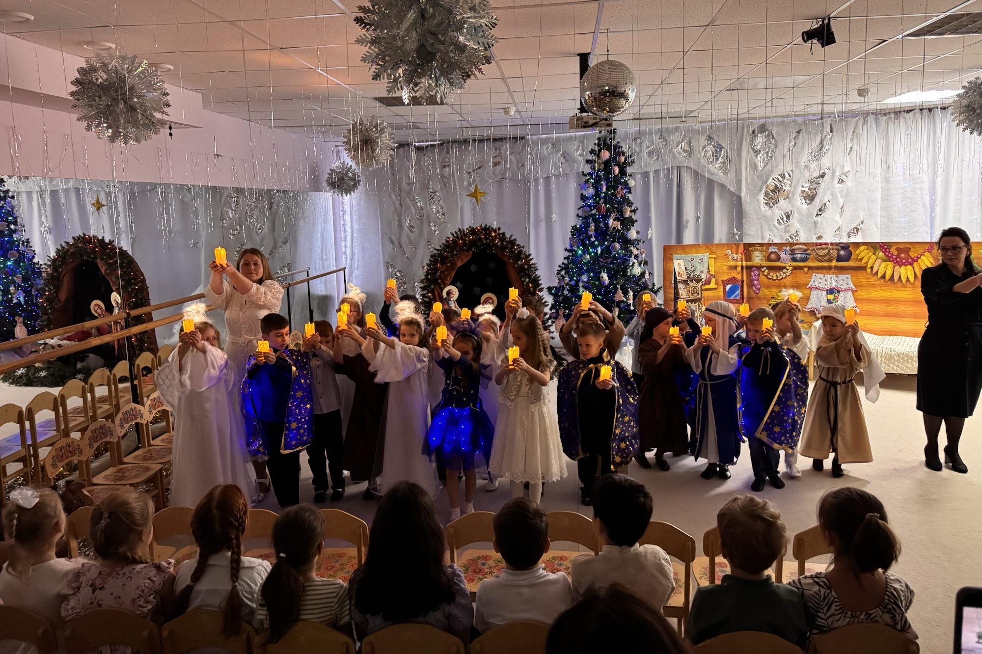 Дети вместе с родителями представили гостям тематический спектакль, отгадывали загадки, водили хороводы, играли, танцевали, а священнослужители подарили малышам сладкие гостинцы.