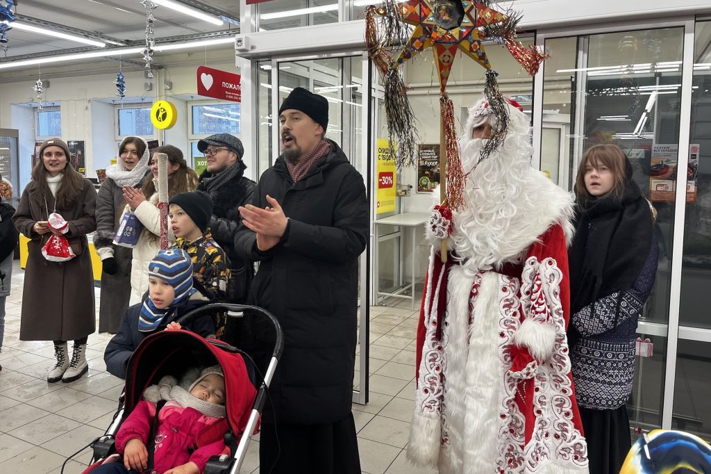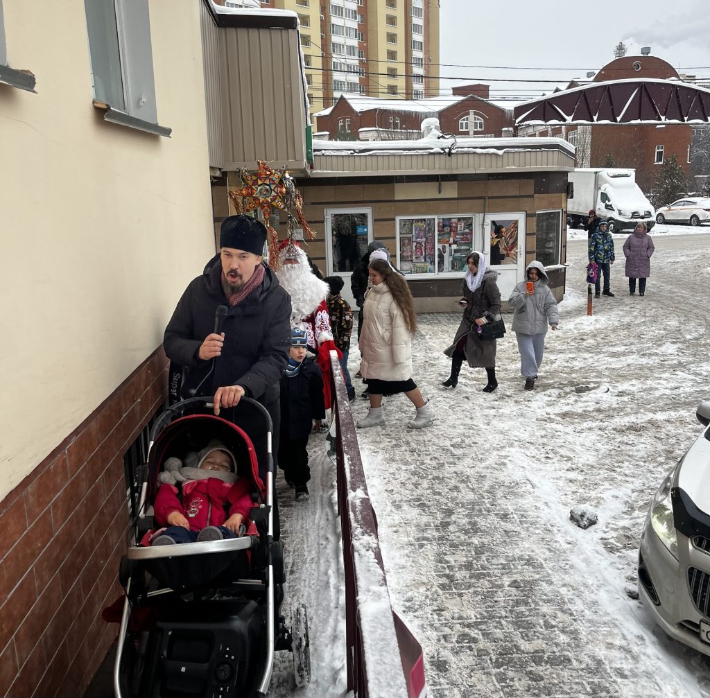 7 января ответственный Епархиального отдела по делам молодёжи, настоятель храма блаженной Ксении Петербургской деревни Слобода иерей Александр Тарабрин вместе с молодёжными объединениями Видновского благочиния: молодёжным клубом «Хризма», участниками молодёжной православной среды «Прозелит» и воспитанниками воскресной школы храма блаженной Ксении совершили поздравительное путешествие по деревне Слобода и близлежащим селениям, чтобы поздравить жителей с Рождеством Христовым.
