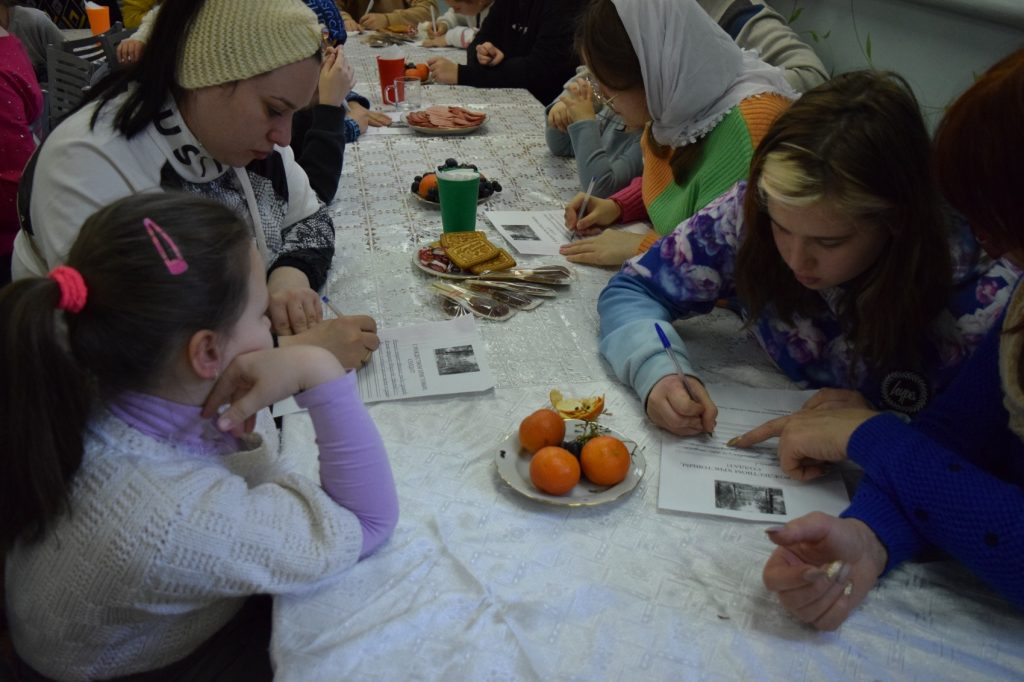 Затем, после поздней детской литургии и Причастия состоялся совместный праздник воскресной школы храма и подопечных Ленинской районной организации Всероссийского общества инвалидов, которые вместе с родителями и председателем своей организации Н.А. Рящиной приняли в нем участие.