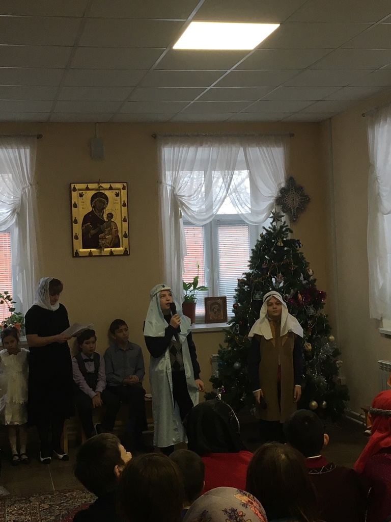 Вниманию гостей и всех собравшихся учащимися воскресной школы была представлена театральная постановка, посвященная Рождеству Христову. В исполнении участников праздника прозвучали рождественские стихи и песнопения.