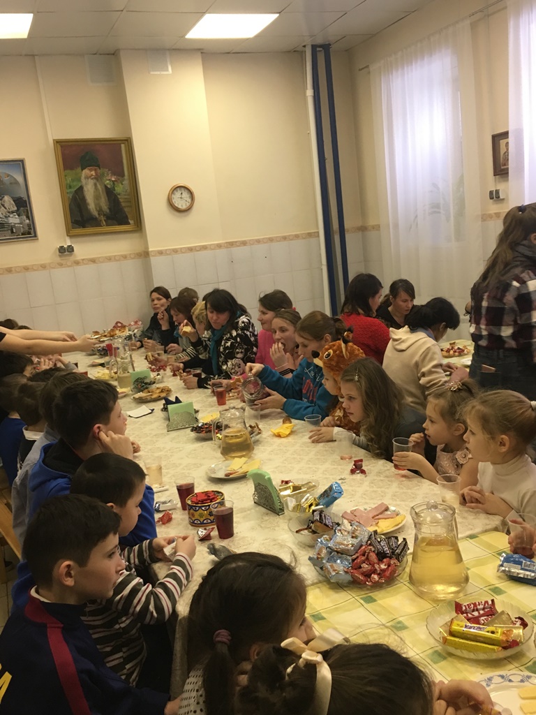 По окончании концерта состоялось общее чаепитие в трапезной благотворительного центра и вручение подарков.