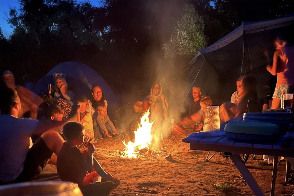 Вечером все собрались у костра и делились историями.