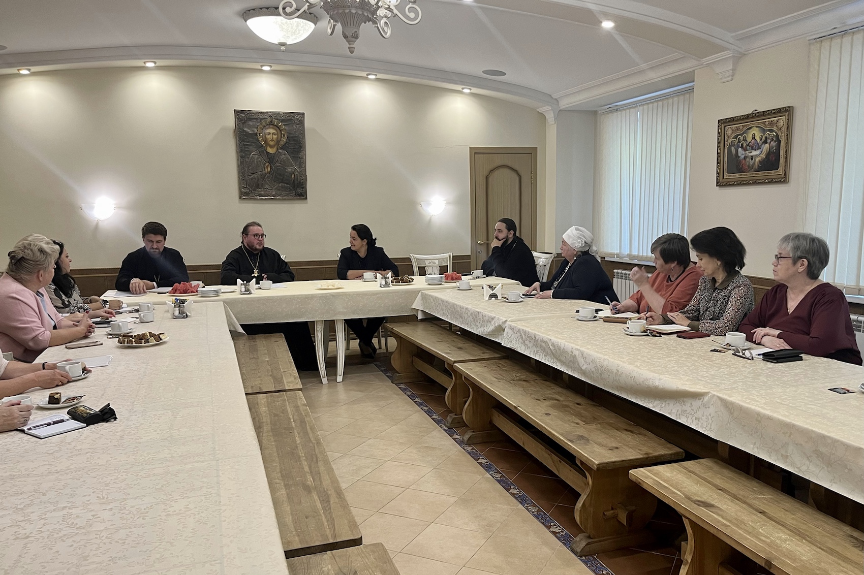 На совете прошло обсуждение годового плана совместной работы. Особое внимание было уделено мероприятиям в рамках Рождественских образовательных чтений. Иеромонах Софроний предложил способы заинтересованности участия детей в международном конкурсе «Красота Божьего мира». Вместе ректором МРСЭИ члены Координационного совета обсудили возможность создания на базе института молодежного медиацентра в рамках епархиального проекта по работе с нецерковной молодежью «Открытые двери». Заместитель благочинного иерей Николай Шапорев предложил мероприятия по организации активного взаимодействия педагогов с духовенством благочиния в процессе подготовки к конкурсу «За нравственный подвиг учителя» и предметной неделе ОПК. Иерей Николай также напомнил о существовании в благочинии просветительского семинара для учителей ОПК и ДКП «Введение в православное богословие». Кроме того, участники встречи обсудили новые формы сотрудничества в сфере духовно-нравственного просвещения, воспитания детей и молодежи.