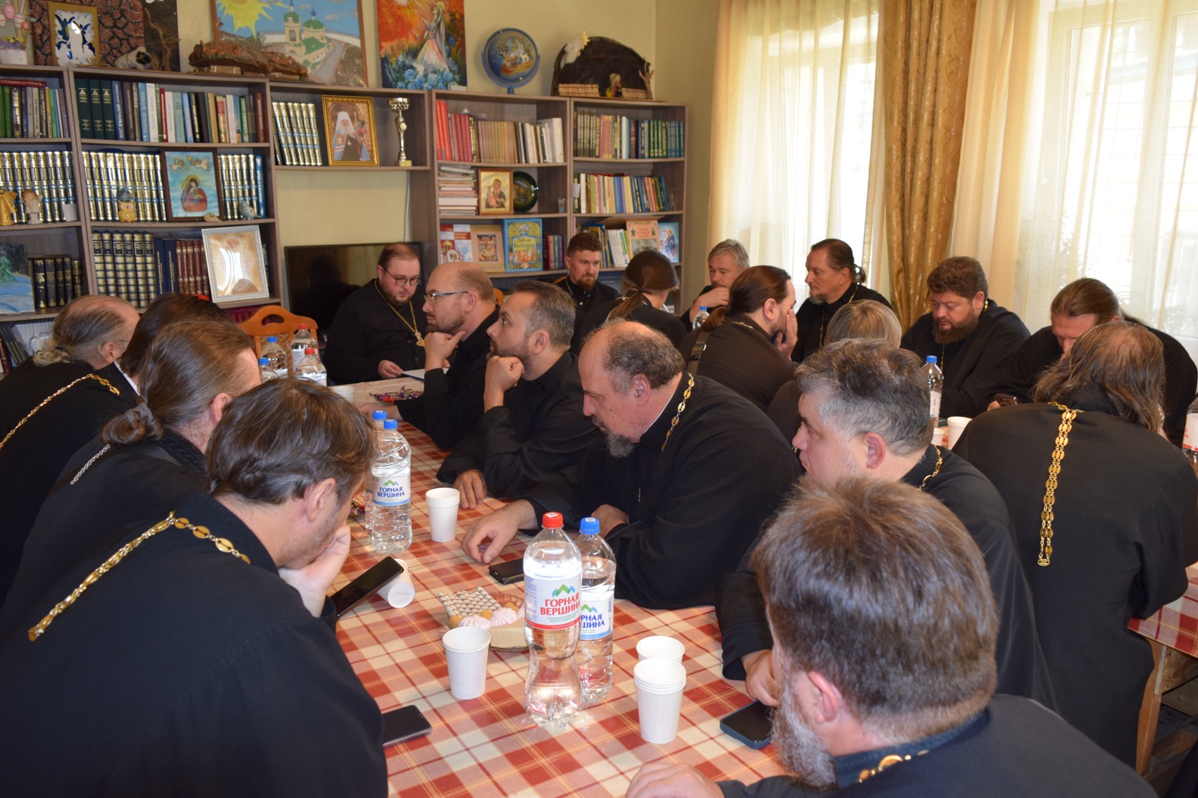 21 августа в приходском доме Никольского храма с. Ермолино состоялось очередное совещание духовенства Видновского благочиния. Вначале были вручены нагрыды по случаю личных юбилейных дат священнослужителей. Настоятелю Боголюбского храма п. Дубровский иерею Мерабу Саралидзе — медаль ордена Русской Православной Церкви благоверного князя Димитрия Донского, медаль Подольской епархии преподобного Варлаама Серпуховского — ностоятелю Георгиевского храма г. Видное протоиерею Михаилу Егорову, архиерейские грамоты — настоятелю и клирику Никольского храма с. Ермолино протоиерею Виктору Ястремскому и иерею Дионисию Золотухину. Затем благочинный иеромонах Софроний (Горохольский) довел до сведения священнослужителей циркуляры и распоряжения священноначалия. Также были обсуждены подготовка к началу нового учебного года, проекту «Добрый сад» в дошкольных группах, епархиальной аттестации приходских воскресных школ и предстоящему отчетному совещанию духовенства.