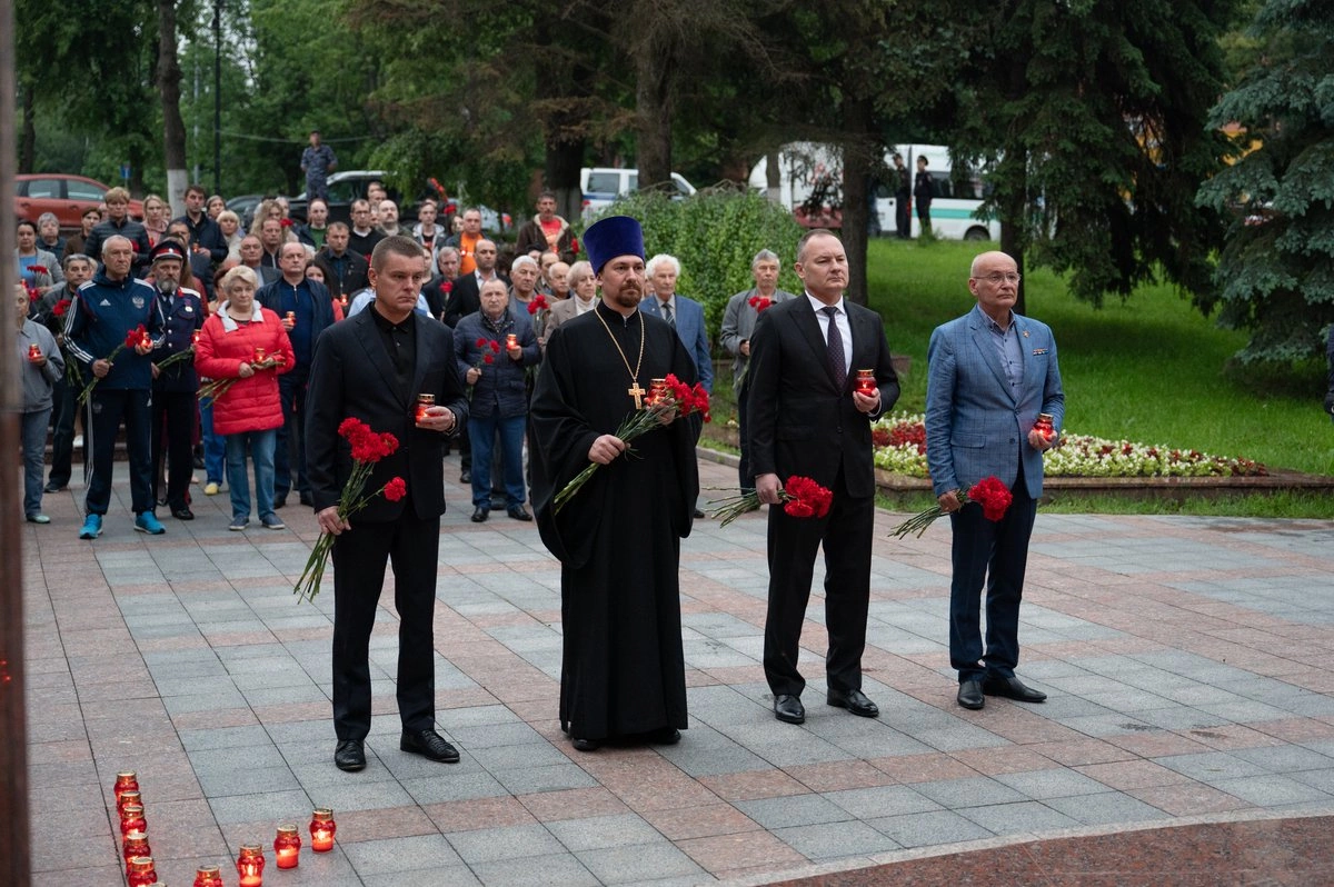 22 июня утром в 4 часа на аллее Славы г. Видное жители округа и представители администрации почтили память тех, кто отдал свои жизни ради нашего мирного неба возложением цветов к Вечному огню. В акции принял участие заместитель благочинного иерей Николай Шапорев.