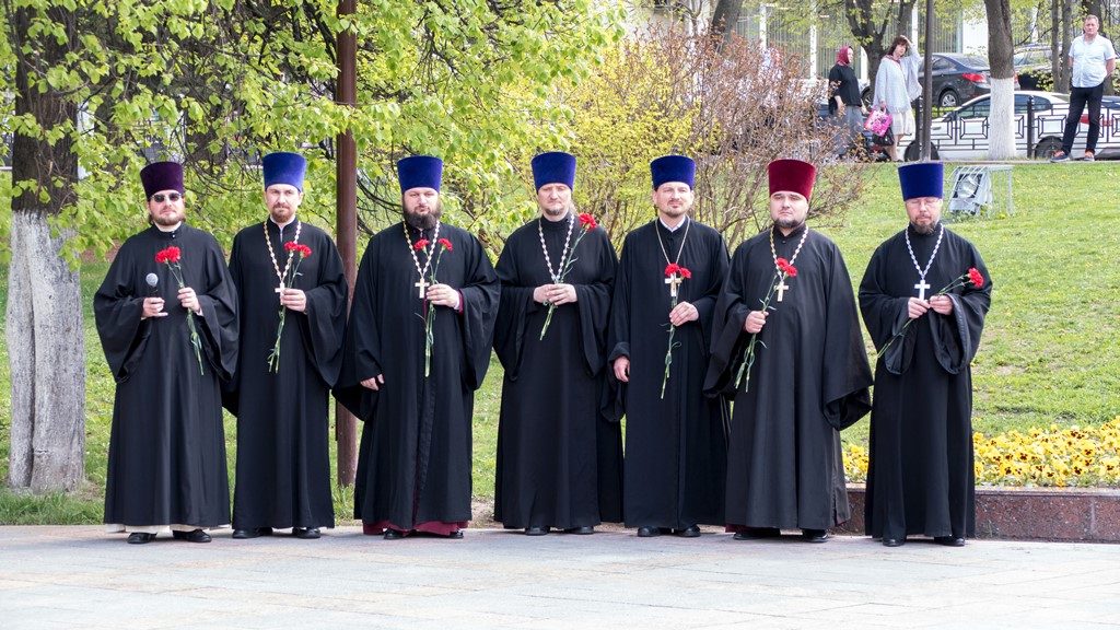 После крестного хода и праздничных поздравлений, на Аллее Славы состоялось поминовение «вождей и воинов, жизнь свою за веру и Отечество положивших». В памятном мероприятии приняли участие ветераны Великой Отечественной Войны, представители общественных организаций района, учащиеся воскресной школы Георгиевского храма, воспитанники военно-патриотического движения Ленинского района «Юнармия». По традиции «минуту молчания» возвестил главный колокол на колокольне храма.