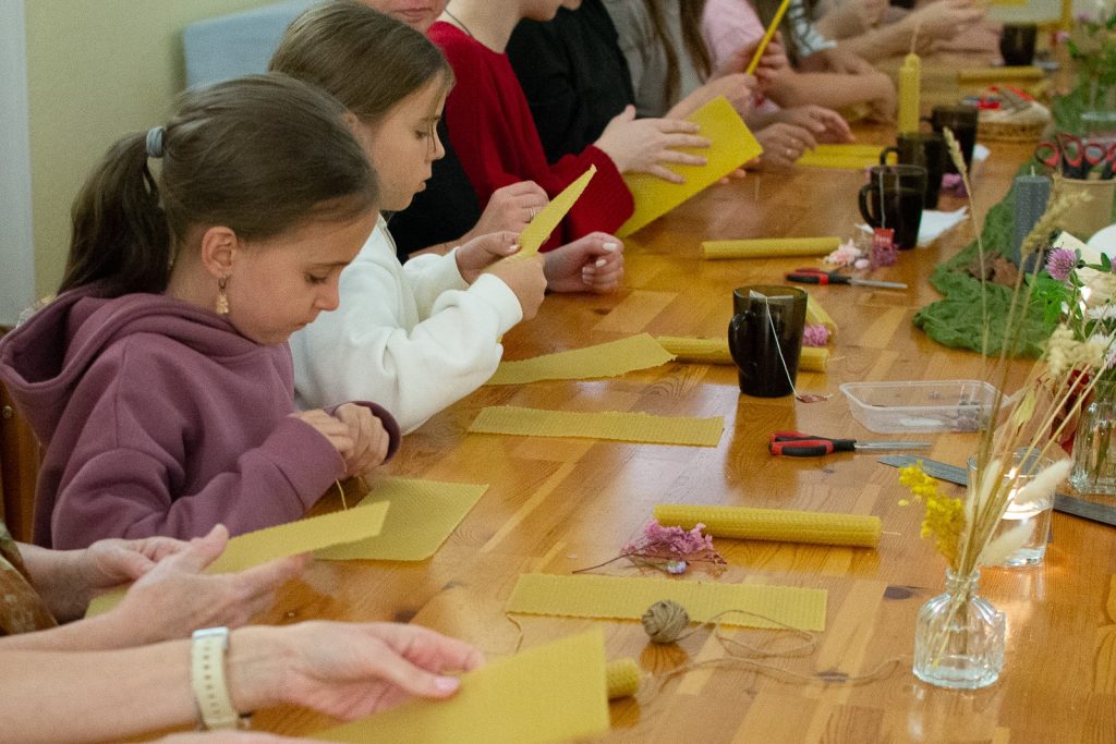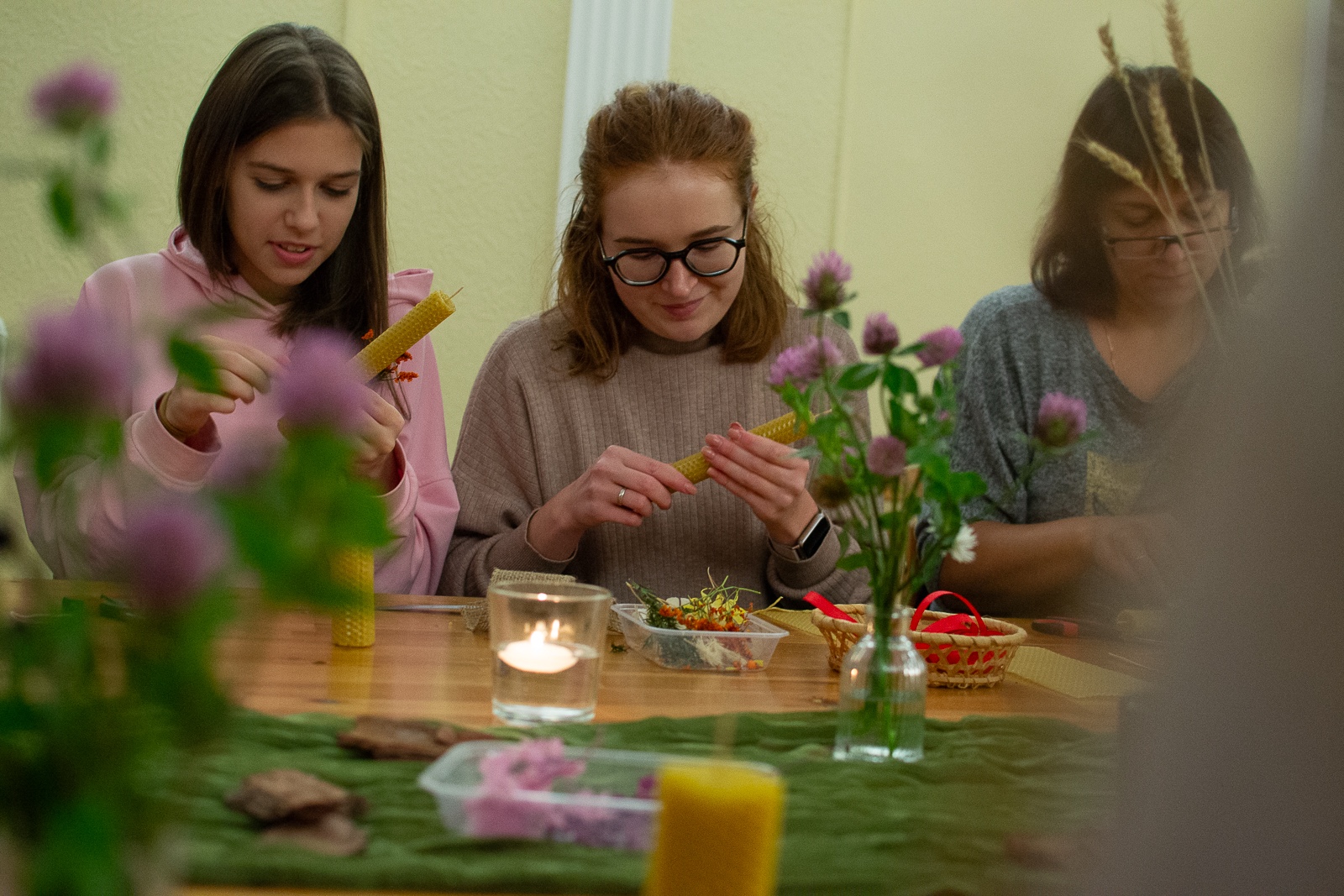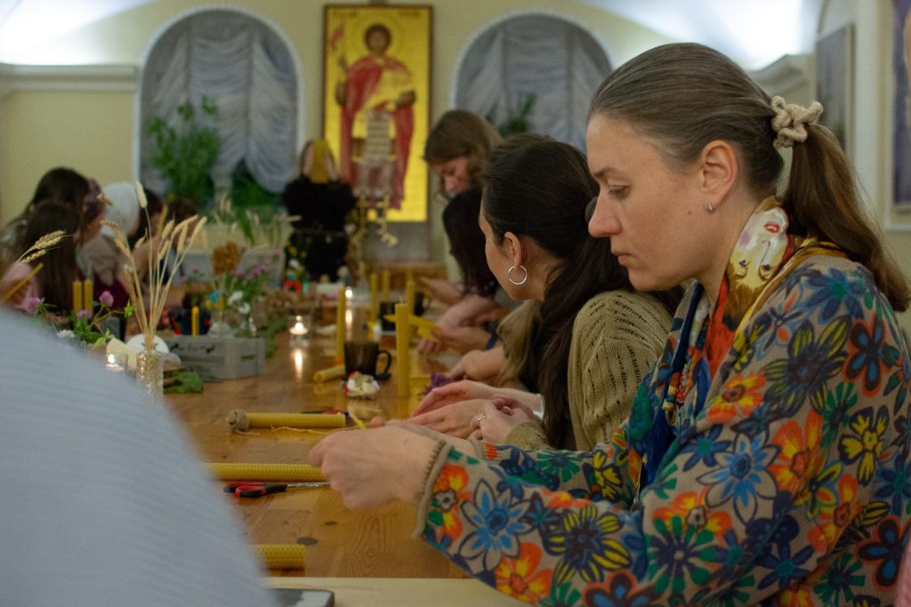 3 октября в «Женском клубе» Георгиевского храма состоялся мастер-класс по изготовлению декоративных свечей из вощины. Под руководством флориста храма Елены Страховой участницы и гостьи «Женского клуба» сделали для своих семей и в подарок близким по две медовые свечи с украшениями.