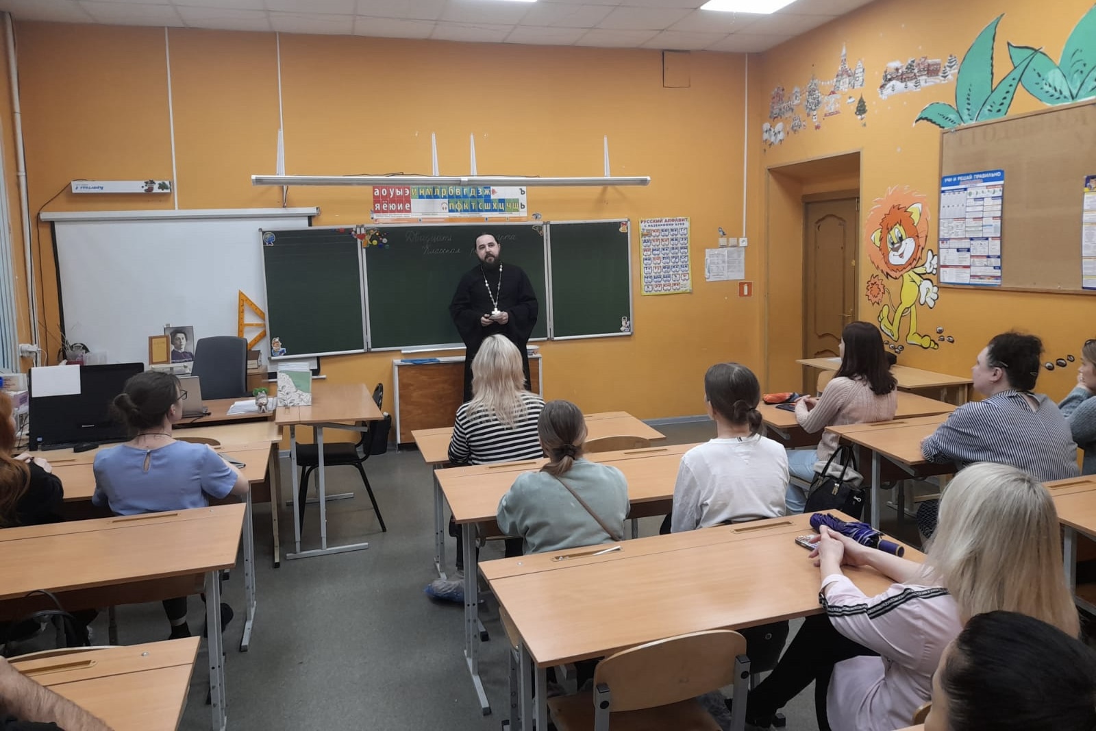 Священник рассказал присутствующим о модуле «Основы Православной Культуры», а также о пользе данного предмета в культурном, духовно-нравственном, патриотическом воспитании подрастающего поколения. В конце встречи отец Анатолий ответил на вопросы родителей.