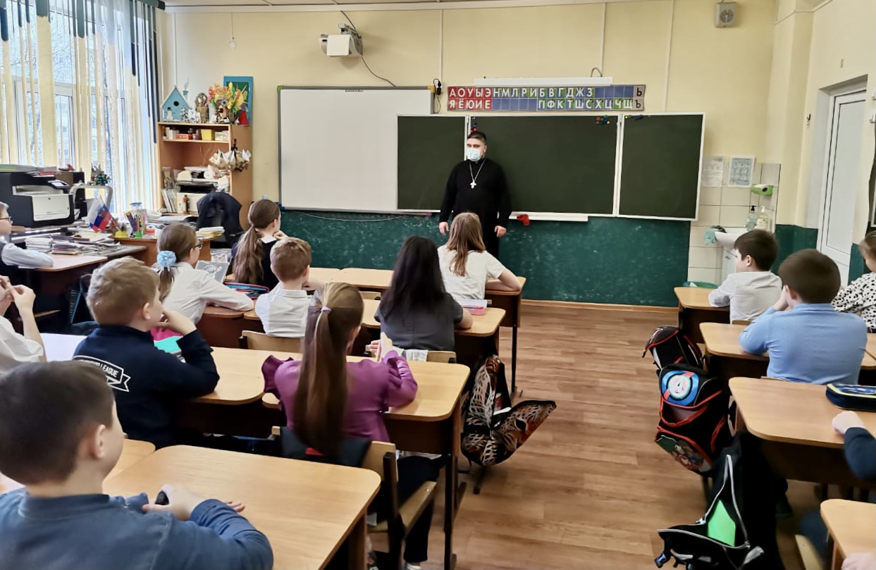 9 апреля 2021 года настоятель Никольского храма с. Ермолино протоиерей Виктор Ястремский посетил Видновскую СОШ N 7 и провёл занятие, посвящённое празднику Благовещения.