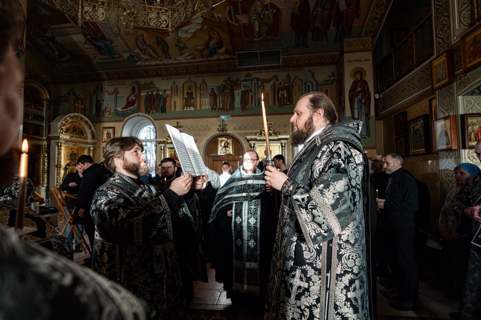 22 марта вечером архиепископ Подольский и Люберецкий Аксий совершил вечерню с чтением акафиста Страстям Христовым в Александро-Невском храме города Видное.
