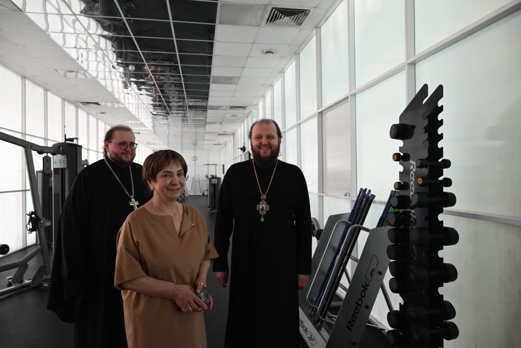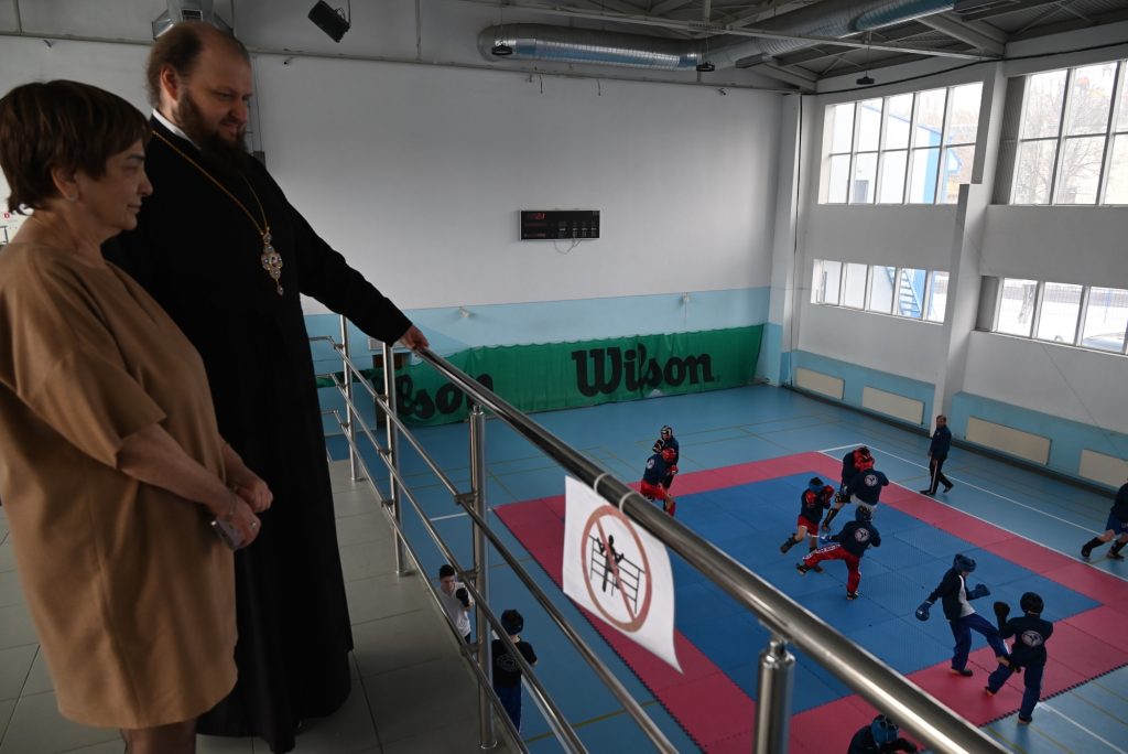 В бассейне ребята показали эстафету по плаванию, а в спортзале выступили танцоры и кикбоксёры. Затем в классе для занятий владыка провел с учащимися беседу по теме «Спорт и духовная жизнь человека», после чего ответил на заданные вопросы.