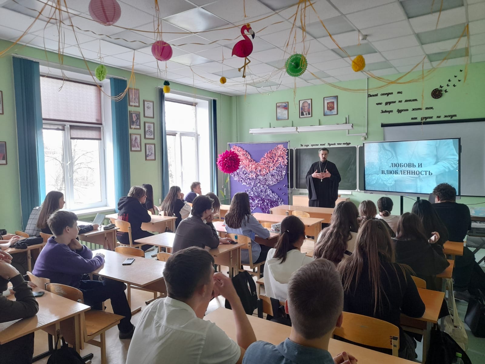 24 апреля 2024 г. в рамках Епархиального проекта «Диалог со священником» прошла встреча старшеклассников СОШ № 1 г. Видное и СОШ №1 с. Молоково с иереем Александром Тарабриным, ответственным отдела по делам молодёжи в Видновском благочинии. Тема беседы: «Любовь и влюбленность». Ребята с интересом слушали рассказ священника о традиционных семейных ценностях и вместе с ним размышляли о том, на каких нравственных основаниях должны строиться личные отношения в семье между мужчиной и женщиной, можно ли вступить в брак по любви, возможен ли брак на всю жизнь. В конце встречи отец Александр ответил на вопросы старшеклассников.