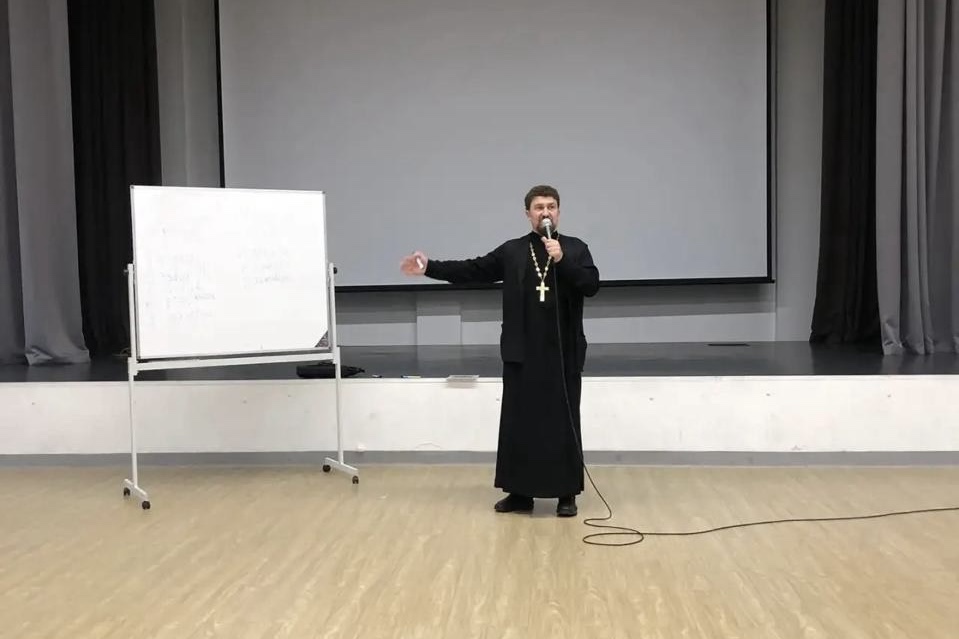 23 сентября в муниципальном автономном общеобразовательном учреждении «Образовательный центр «Старт» им. К.Д. Ушинского» в рамках духовно-просветительского проекта «Диалог со священником» состоялась первая в новом учебном году встреча с учащимися старших классов.