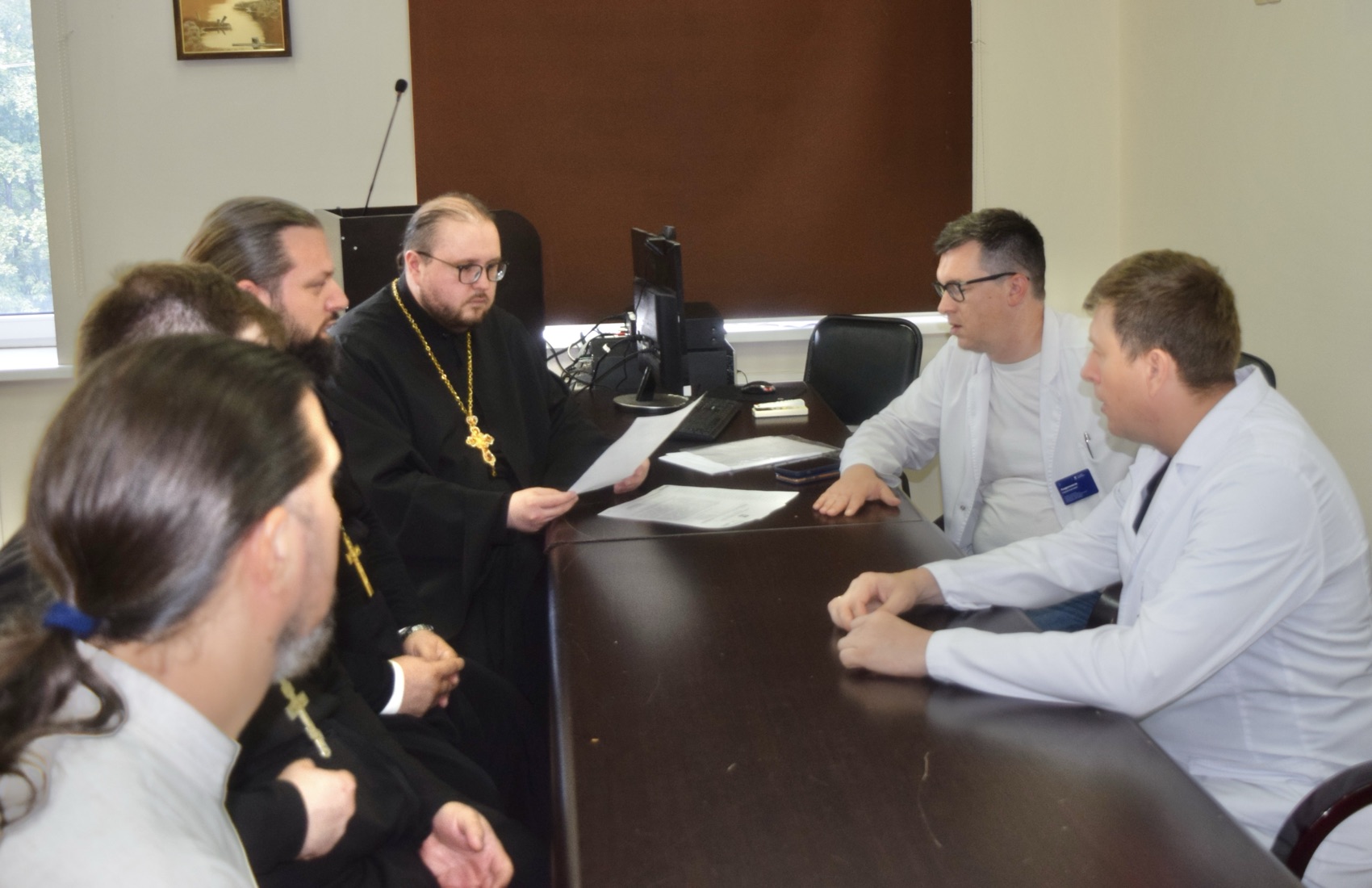9 августа в Видновской клинической больнице состоялась рабочая встреча по разъяснению норм, указанных в статьях 47 и 67 Федерального закона от 21.11.20011 №323-ФЗ «Об основах охраны здоровья граждан в Российской Федерации», в которой принимали участие заместитель главного врача по медицинской части К.О. Хадиков, заместитель главного врача по хирургии С.С. Андреенков, благочинный Видновского церковного округа иеромонах Софроний (Горохольский), ответственный епархиального Отдела по работе с медицинскими учреждениями в Видновском благочинии иерей Вячеслав Корниенко, клирик домового больничного храма вмч. Пантелеимона иерей Дмитрий Топчиев. В ходе мероприятия обсуждались условия и правила оформления отказа от патолого-анатомического вскрытия по религиозным убеждениям священнослужителей, монашествующих и верующих мирян, а также прижизненного волеизъявления несогласия на изъятие органов и тканей после смерти для трансплантации.