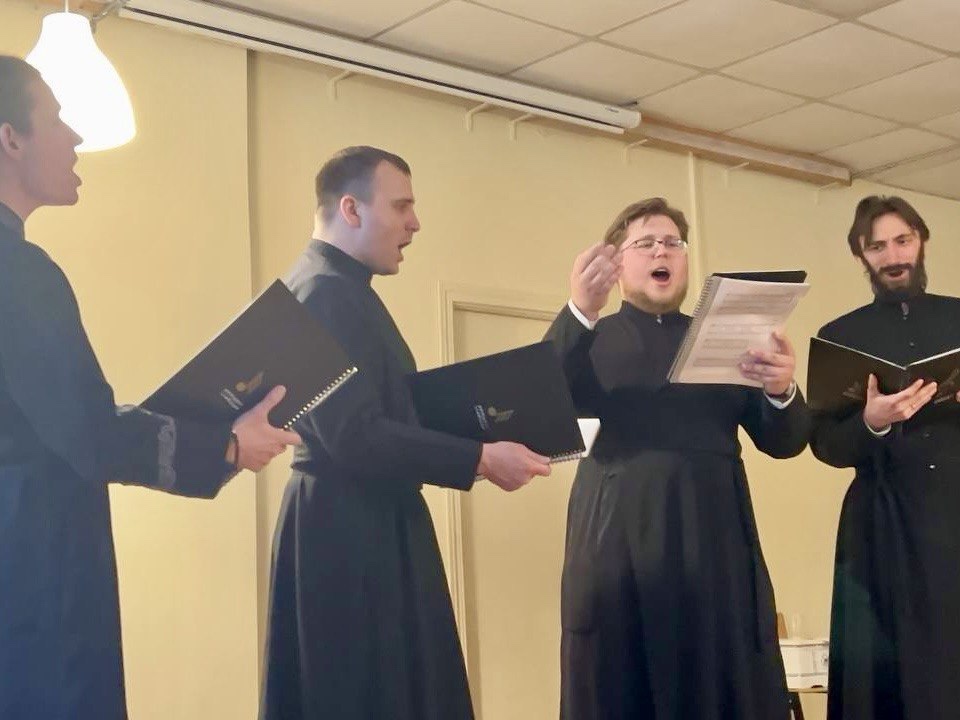 Затем перед собравшимися выступил квартет студентов Сретенской духовной академии. Своим творчеством квартет поздравил девушек со Светлой Христовой Пасхой и с Днем жен-мироносиц.