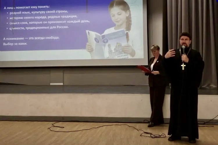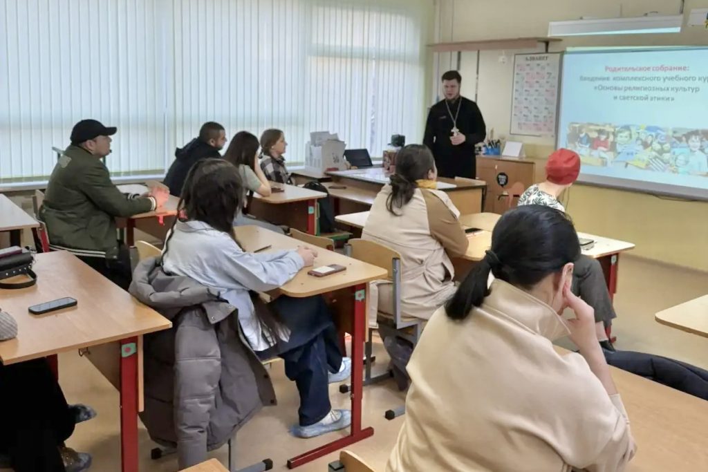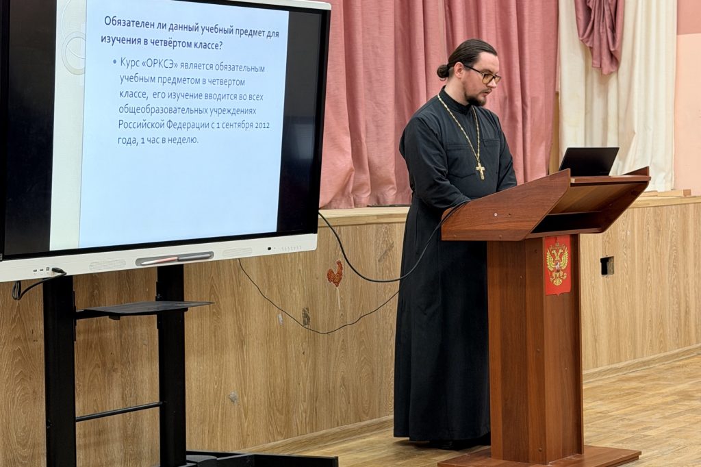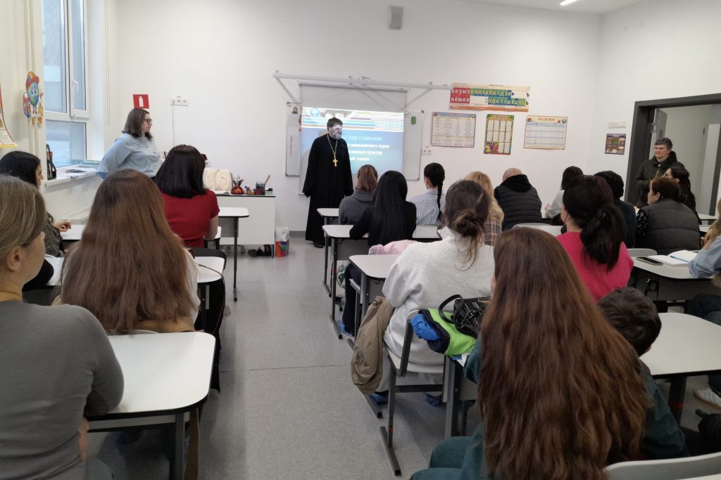 В марте и начале апреля этого года в учебных учреждениях Ленинского г.о. клирики Видновского благочиния приняли участие в родительских собраниях по выбору модуля предмета «Основы религиозных культур и светской этики». Среди основных модулей предмета родителям предлагался на выбор модуль «Основы православной культуры». Священнослужители встретились с родителями и педагогами, чтобы рассказать о содержании этого нового учебного курса, донести до принимающих решение взрослых, что программа сфокусирована на культурологическом аспекте, а не на религиозном наставлении, что Православие выступает фундаментом русской идентичности, поэтому без понимания его основ невозможно полноценное освоение отечественной истории, литературы и искусства.