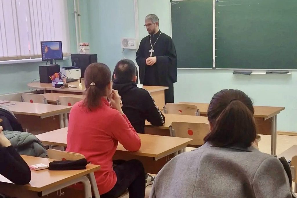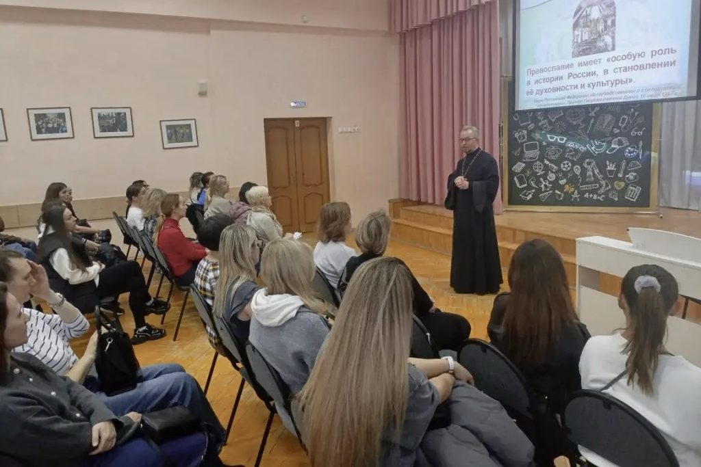 Настоятель Александро-Невского храма г. Видное иерей Николай Шапорев в этот день принял участие в собрании Видновской средней школы № 7.