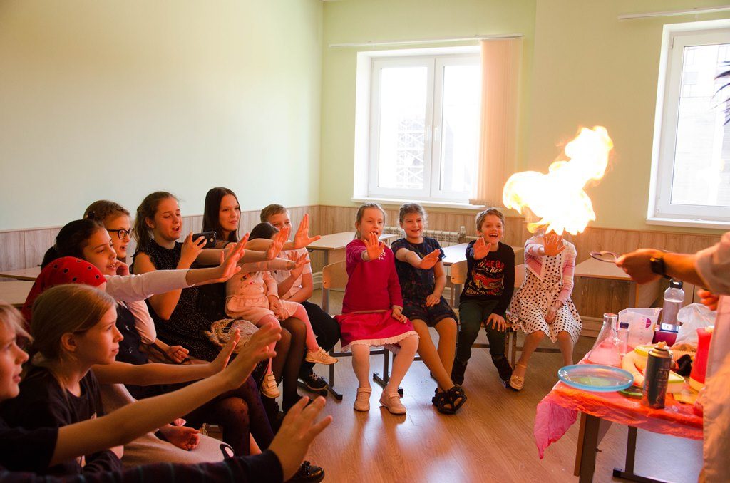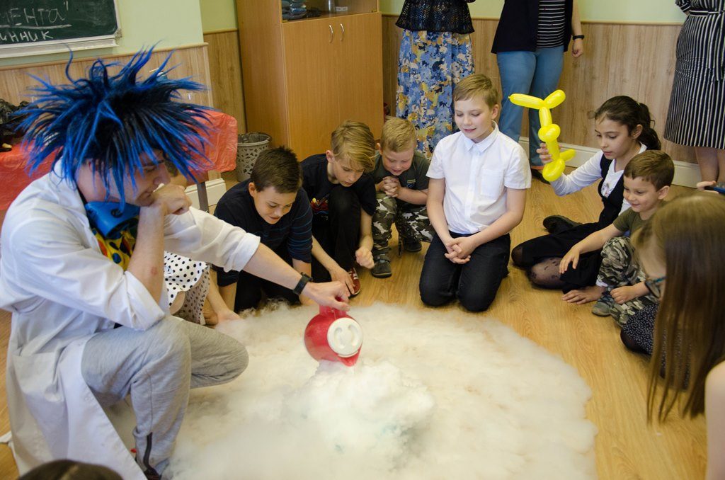 После совместной трапезы выпускников, родителей и преподавателей, для детей было организовано шоу с сухим льдом.