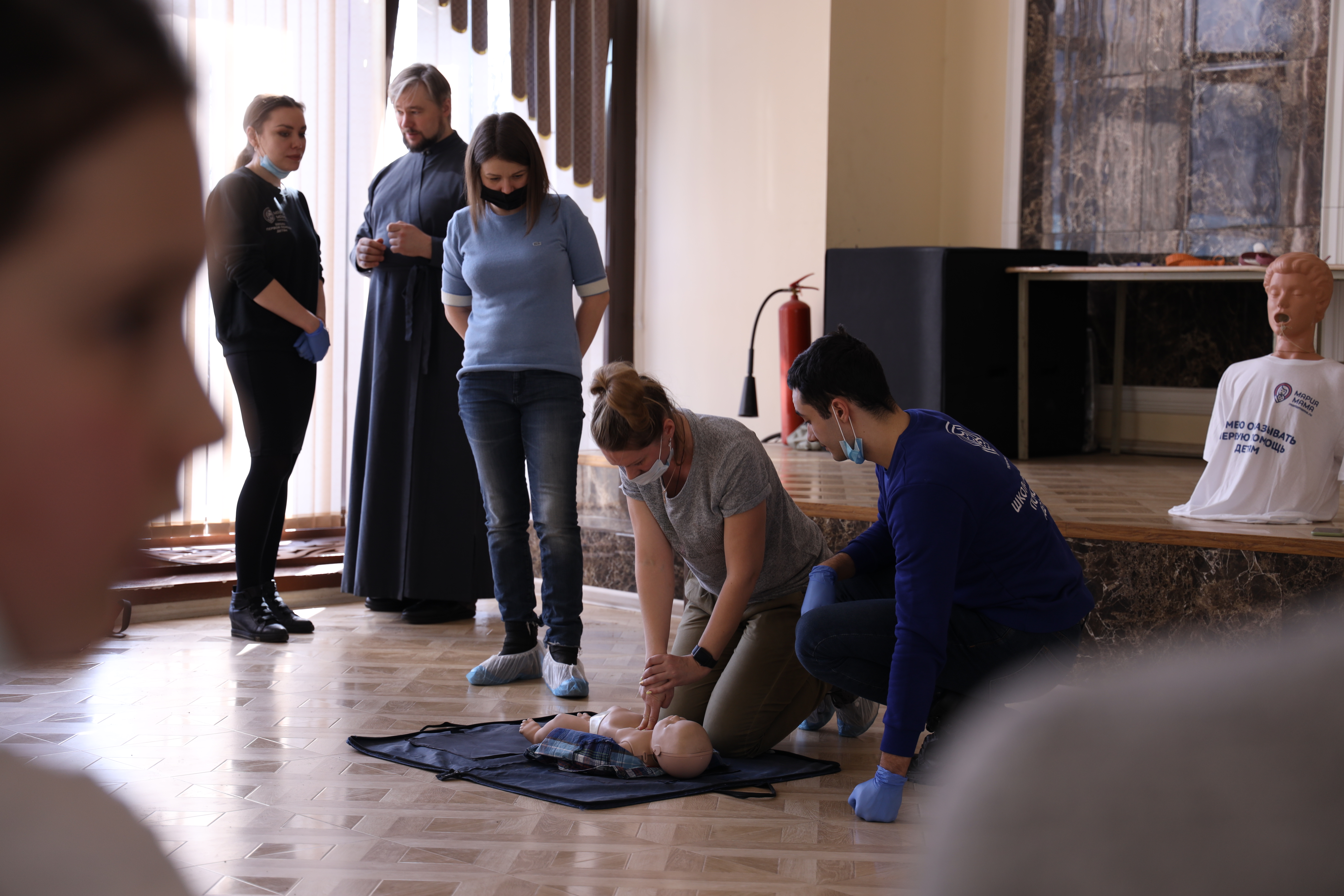 Родители и дети смогли не только получить важные теоретические знания, но закрепили их практически, на специальных манекенах с помощью специалистов — аттестованных инструкторов и спасателей Школы.